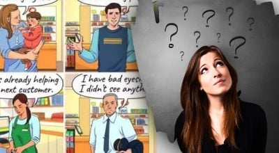 Tereikia pažvelgti į žemiau esantį paveikslėlį ir nustatyti, kuris asmuo parduotuvėje pavogė kažkieno piniginę. Trys iš pavaizduotų žmonių sako tiesą, bet vienas iš jų meluoja.