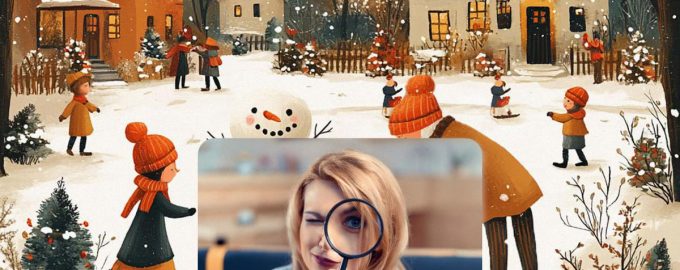 Žemiau pamatysite apsnigtos aikštės, kurioje vaikšto žmonės, vaizdą. Vieni žaidžia sniego gniūžtėmis, kiti stato sniego senį ar tiesiog grožisi žiemos peizažu.
